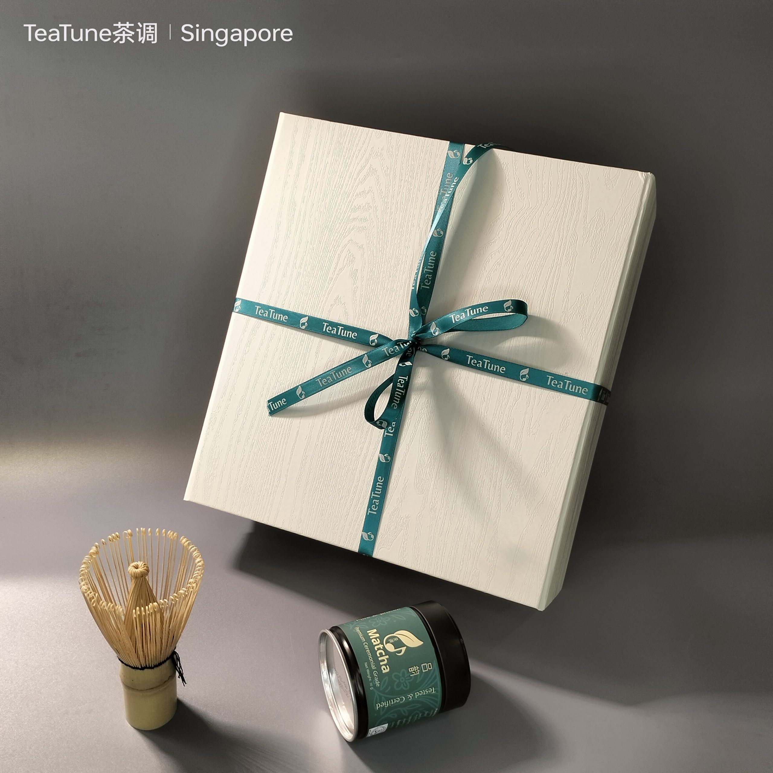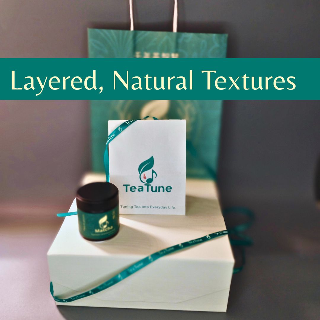 Centrally tied, a custom-designed TEATUNE brand ribbon graces the box, its distinctive green and white logo pattern adding a vibrant touch of brand identity. Beyond its elegant exterior, this gift box thoughtfully cradles TEATUNE’s carefully selected premium matcha or exquisite loose-leaf teas. It represents more than just a gift; it’s a profound gesture of wellness advocacy and a heartfelt wish for inner balance.